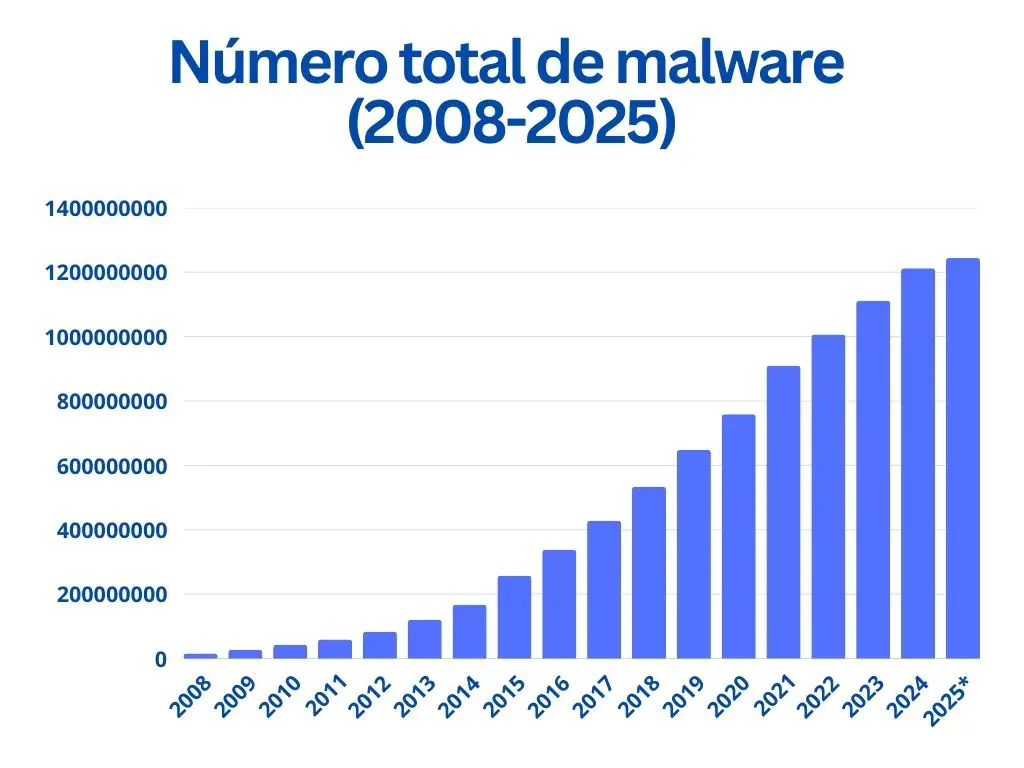 Bajo estas líneas encontraréis detallado el crecimiento del malware de 2008 a 2025: