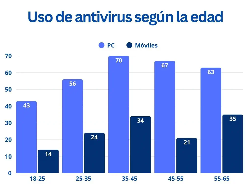 Un reciente estudio realizado por Cybernews nos muestra que los mayores usuarios de software antivirus tienen entre 35 y 45 años. Esto se debe a que este sector ha crecido observando la evolución del malware y el phishing por Internet, desde la clásica estafa del príncipe de Nigeria hasta los sofisticados vectores de ataque de hoy en día.