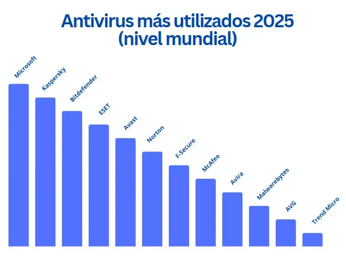 En cuanto a popularidad, los 12 antivirus más utilizados a nivel global son los siguientes: