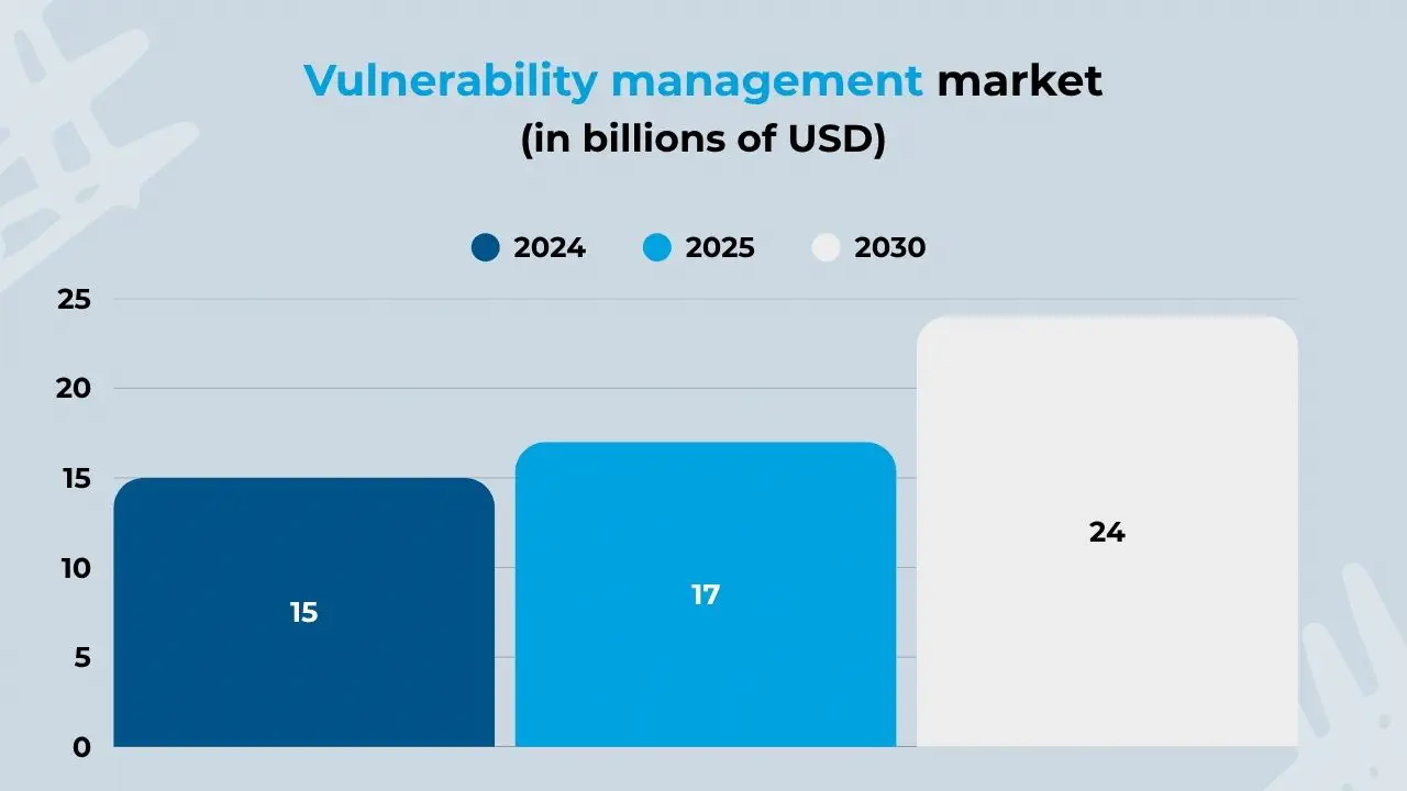 The sharp increase in CVEs is accompanied by a sustained growth of the global vulnerability management industry. Below are the most relevant statistics regarding the evolution of this market, given its crucial role in the digital security of companies.